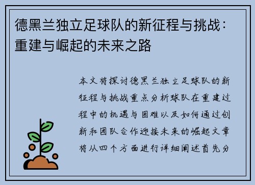 本文将探讨德黑兰独立足球队的新征程与挑战,重点分析球队在重建过程中的机遇与困难,以及如何通过创新和团队合作迎接未来的崛起。文章将从四个方面进行详细阐述:首先,分析德黑兰独立足球队的历史背景及其面临的困境;其次,探讨球队管理层如何通过引援和内部整合来实现重建;接着,讨论球队青训系统和年轻球员的培养与发展;最后,展望未来德黑兰独立足球队如何通过战术革新和国际化战略应对挑战,实现再次崛起。通过这些方面的深入分析,我们可以更好地理解这支传奇球队的未来之路。